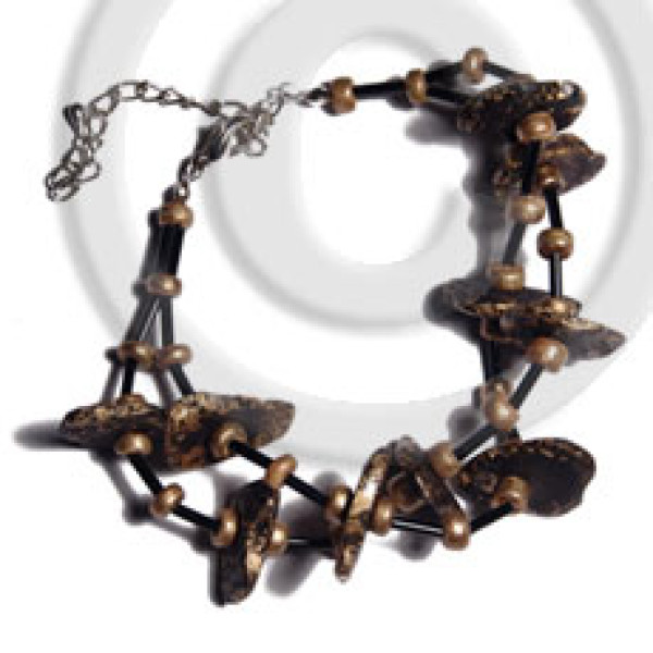 2 rows sig-id wood tube bleached/tiger/nat. brown 2-3mm coco pokalet flower..
