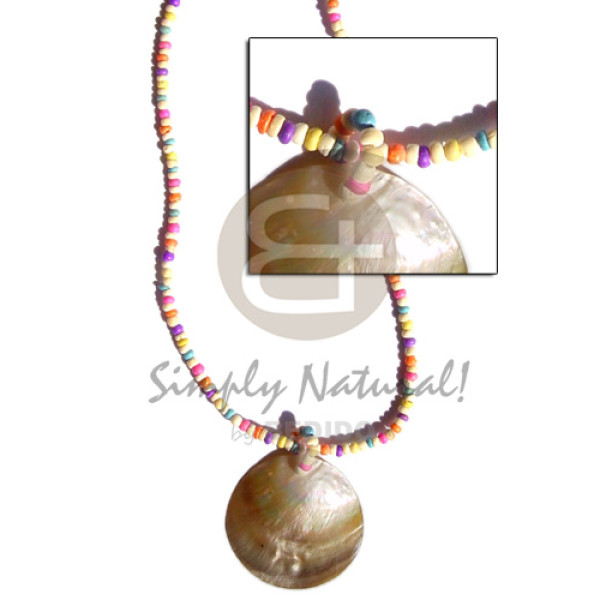 4-5mm coco Pokalet. nat. brown handpainted 15mm robles round wood beads & white rose shell accent /..