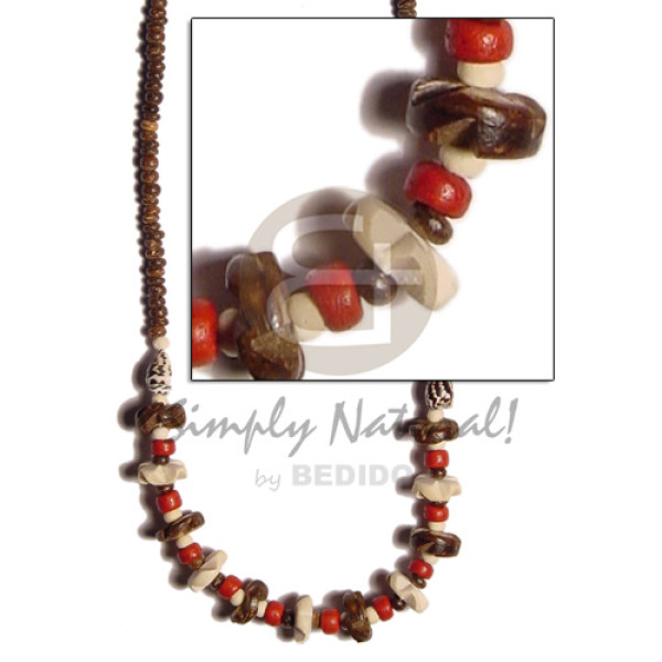 twisted 4 rows 2-3mm coco Pokalet - nat. white/nat brown/red/black combination 5 rows brown cut bea..
