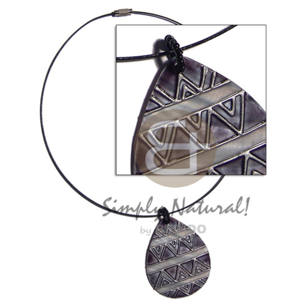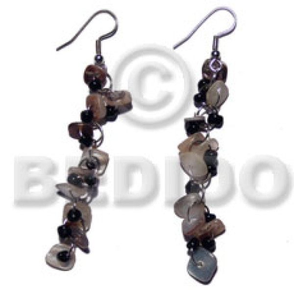 dangling single row black coco chips/Pokalet in silver metallic splashing..