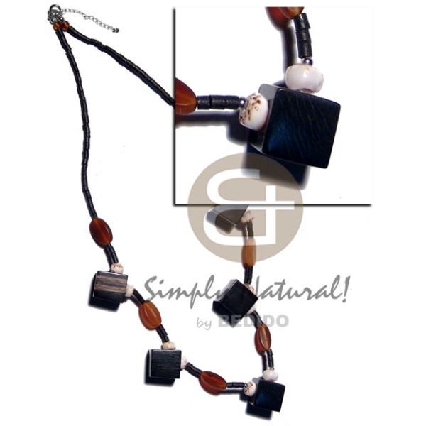 2-3mm black coco heishe diced 18mmx18mm black carabao horn and amber horn accent..