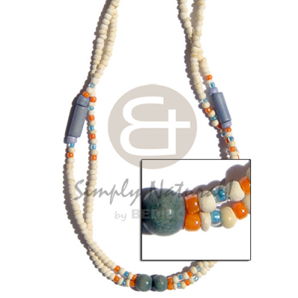 2-3mm 2 rows coco bleached white Pokalet blue wood tube and balls/glass beads alt..