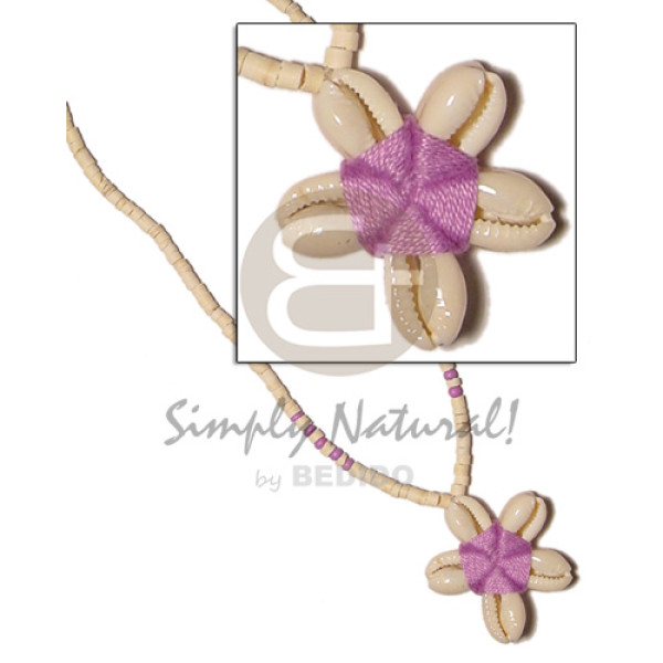 50mm pink capiz shell pendant in 2 rows 2-3mm pink coco heishe & 4-5mm bleached coco heishe..