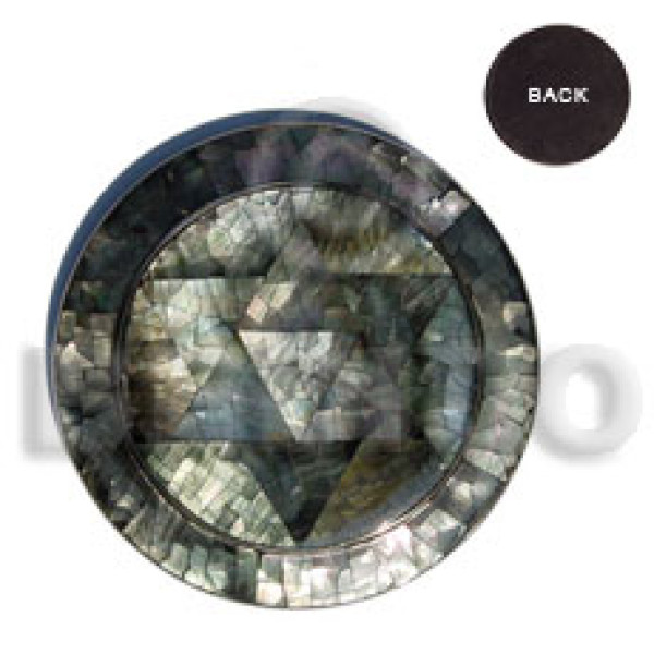 laminated inlaid crazy cut coco/ MOP in 1 inch stainless metal / 65mm in diameter..