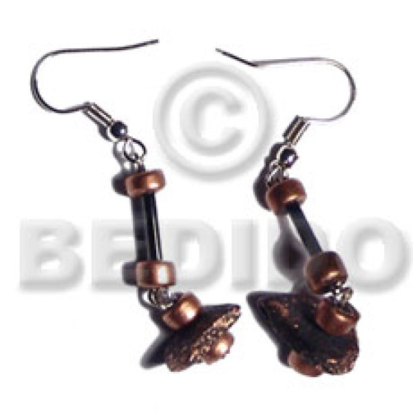 dangling single row black coco chips/Pokalet in bronze metallic splashing..