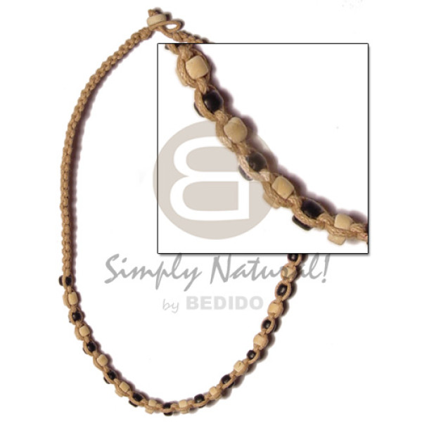4-5mm brown coco Pokalet. brown kukui nuts, coco sticks, buri tiger seed, asstd. wood beads and dan..