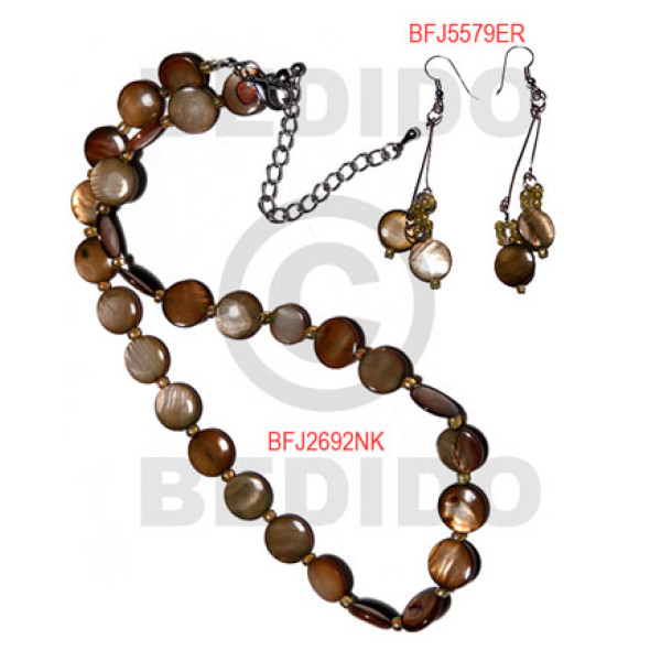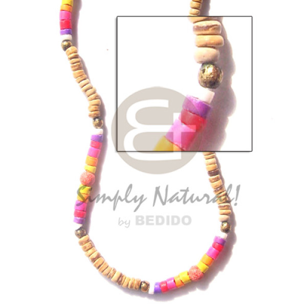 2-3mm coco heishe tiger sq. cut hammershell heishe & wood beads combination..