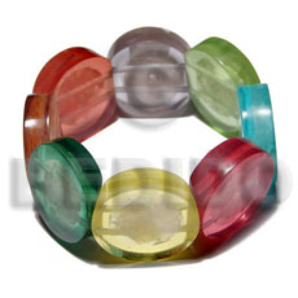 30mm round multicolored clear resin ( 7mm thickness ) laminated crushed capiz shell elastic bangle..