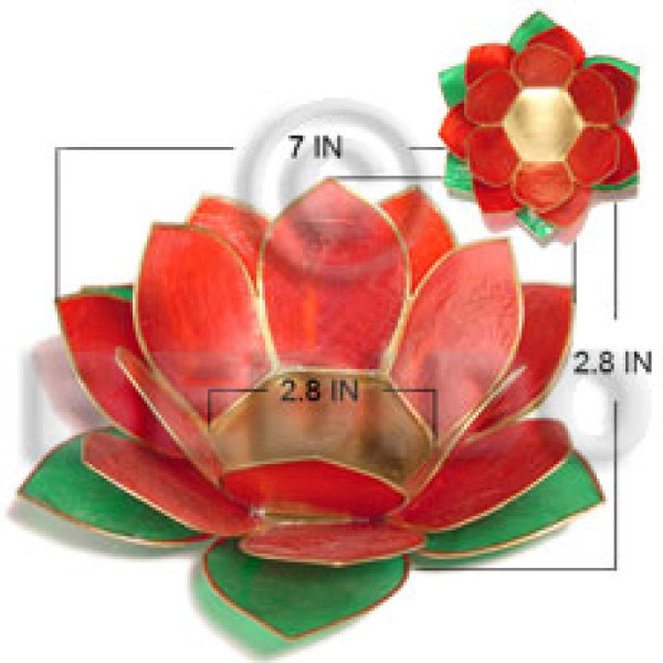 colored lotus red/green combination capiz flower candle holder / w=7in base=2.8 in h= 2.8 in / big..