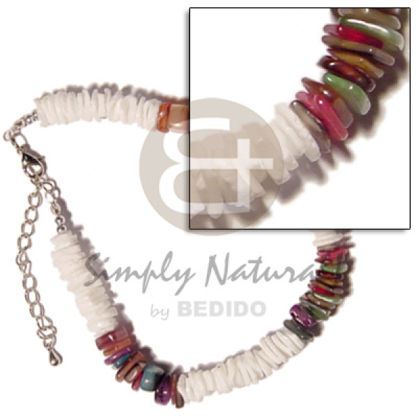green 4-5mm coco Pokalet./white clam heishe/wood bead and yellow coco splashing 4-5mm coco heishe..