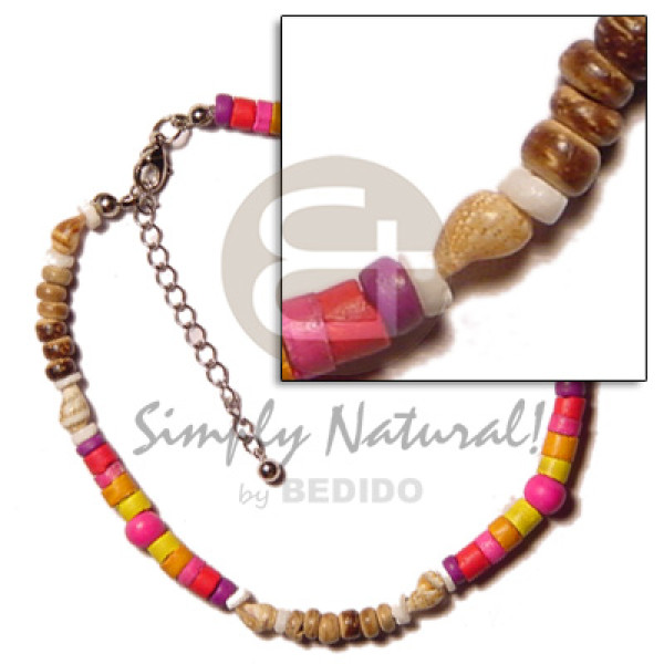 rainbotiger coco heishe 4-5mm nassa and white clam/pink wood beads..