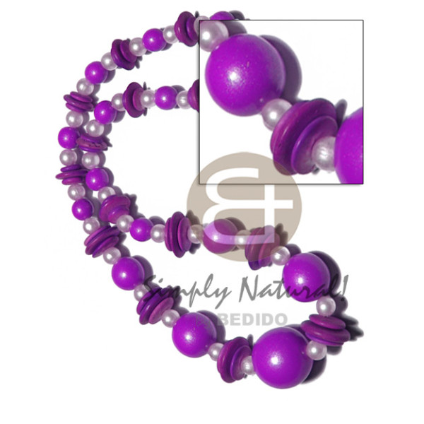 graduated wood beads 25mm/20mm/15mm/10mm in pearl beads accent / lavender tones / 21 in...