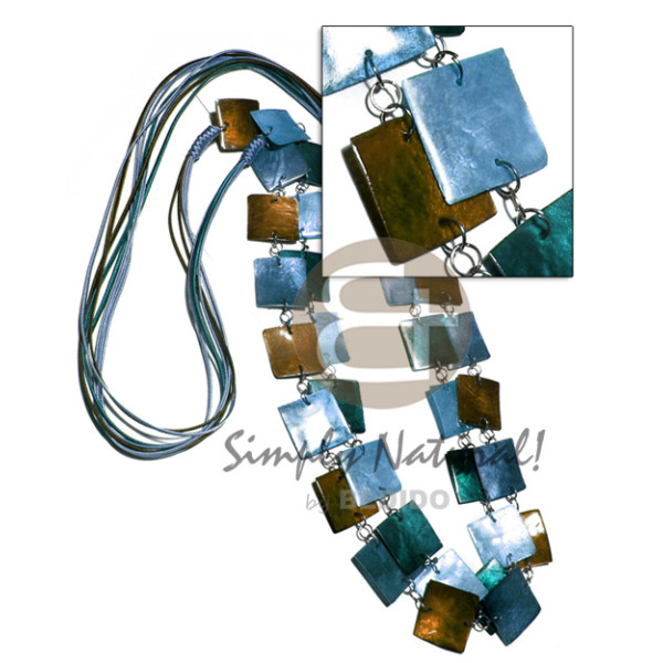 6 layers satin cord double row 34 pcs. square 25mm laminated capiz in metal rings/ 40in / in lig..
