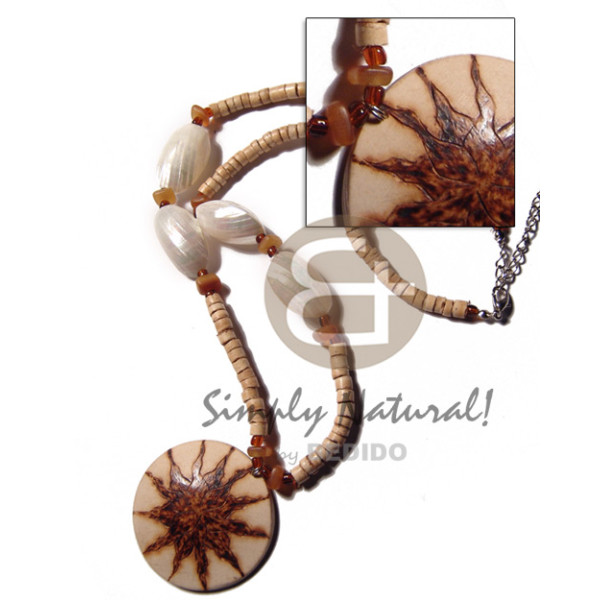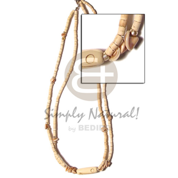 45mm coco nat. white burning on a 22in. 4-5mm nat. white coco heishe neckline silver mouth shell ..