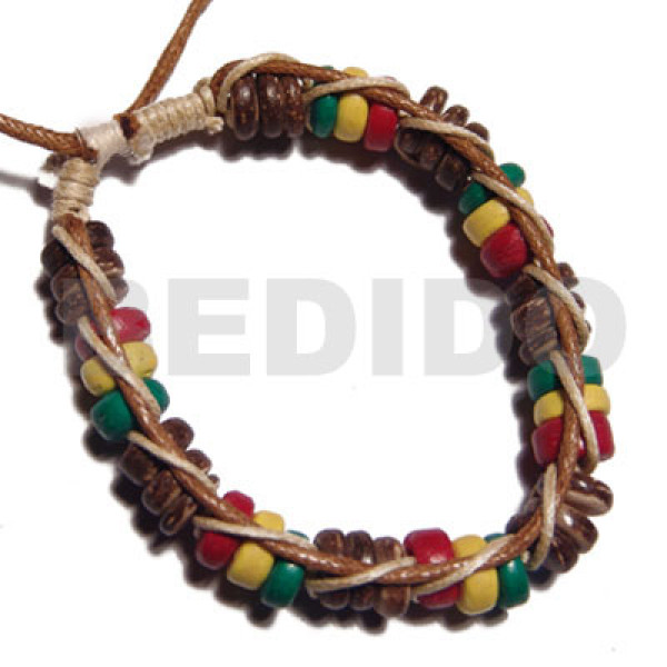 7-8mm coco Pokalet in rasta tone in macrame beige and golden brown wax cord..