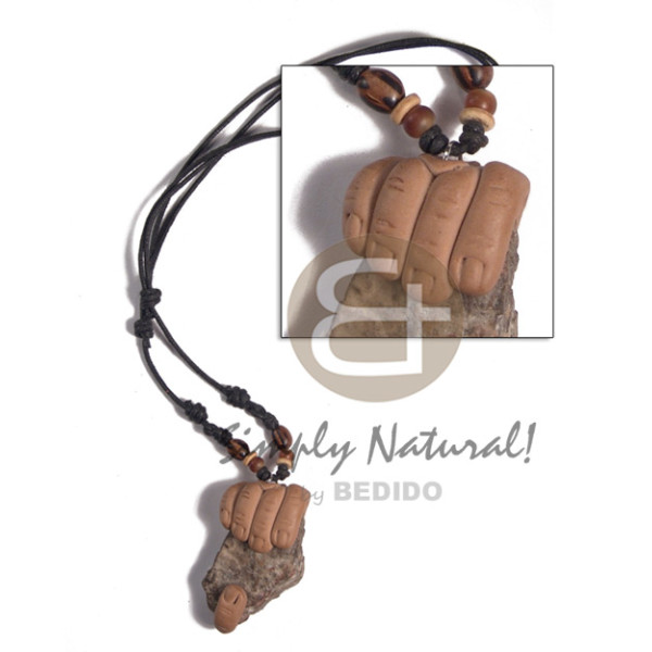 braided nito marble stone 75mmx30mm tooth pendant / coco lock /18in..
