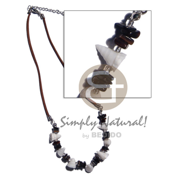 nat. white wood tube mahogany,4-5mm coco Pokalet. nat brown and white clam combination..