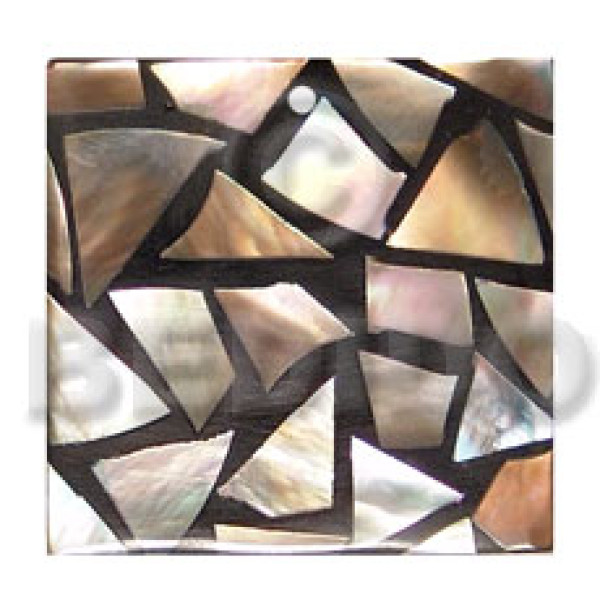 flat 25mmx25mm square black resin laminated brownlip chips..