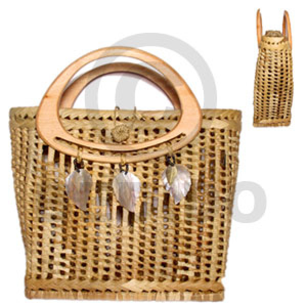 pandan flat weave with centipede/ 9x4x9 1/2 in. / handle 8 in. nassa shell accent..