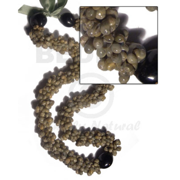 2-3mm nat. black coco Pokalet. tassled colored wood & palmwood beads /30 in...