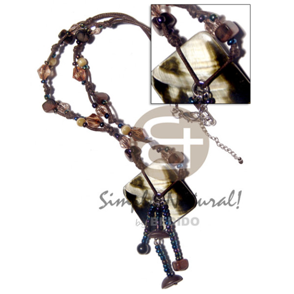 8 rows dark brown agsam bamboo red glass beads combination and 45mm flower kabibe pendant..