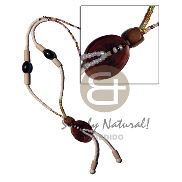 diamond 2 faced coco pendant burning/ 2-3 coco Pokalet nat brown and beads..