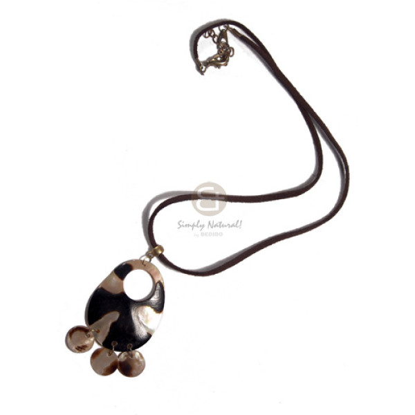 brown leather thong 50mmx40mm teardrop brownlip tiger dangling 12mm brownlip tiger buttons / 18in..