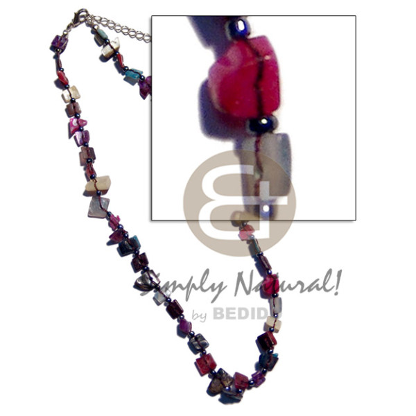 dangling 7 pcs. 17mmx9mm laminated MOP bars resin backing in double leather thong..