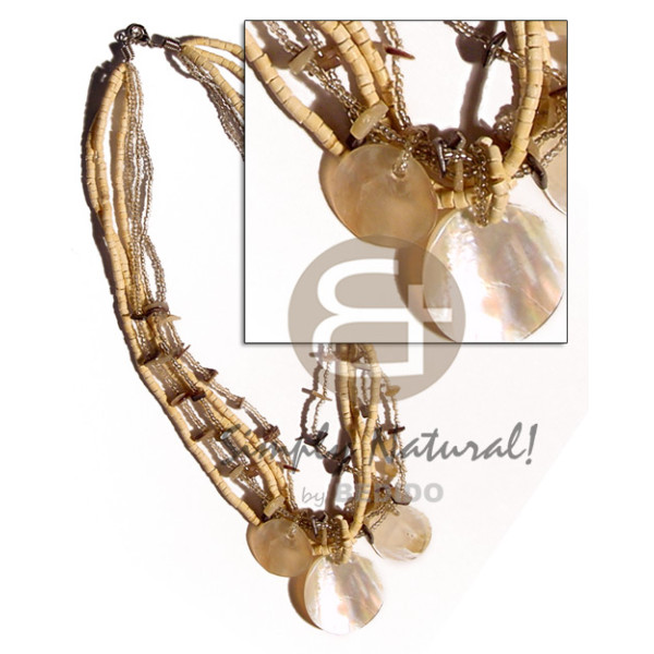 45mm coco nat. white burning on a 22in. 4-5mm nat. white coco heishe neckline silver mouth shell ..