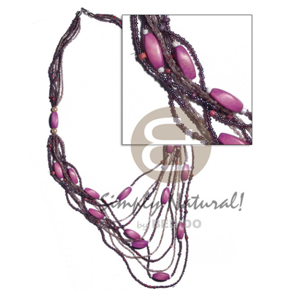 5 rows graduated multilayered glass beads twisted wood beads / lilac tones / 32 in..