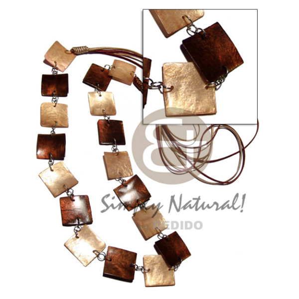 4 layers satin cord single row 17 pcs. square 25mm laminated capiz in metal rings/ 40in / in dar..
