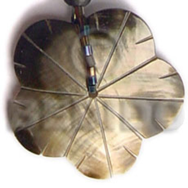 32mmx18mm blacklip shell inlaid metal and resin backing in wax cord and troca shell accenti..
