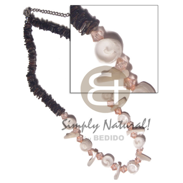 4-5mm coco nat brown bamboo tube burning accent and cowrie fang pendant / 18in..