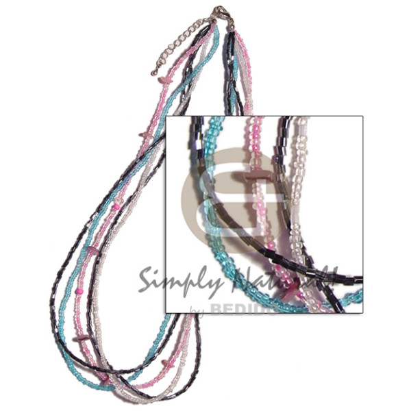 5 rows graduated multilayered cut glass beads buri seeds and wood beads accent/lilac tones / 32 ..