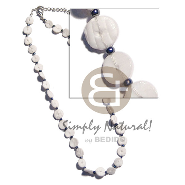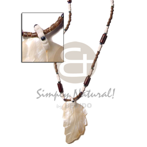 2-3mm white clam heishe/ buri tube/ hammershell leaf pendant..