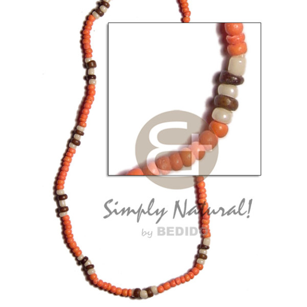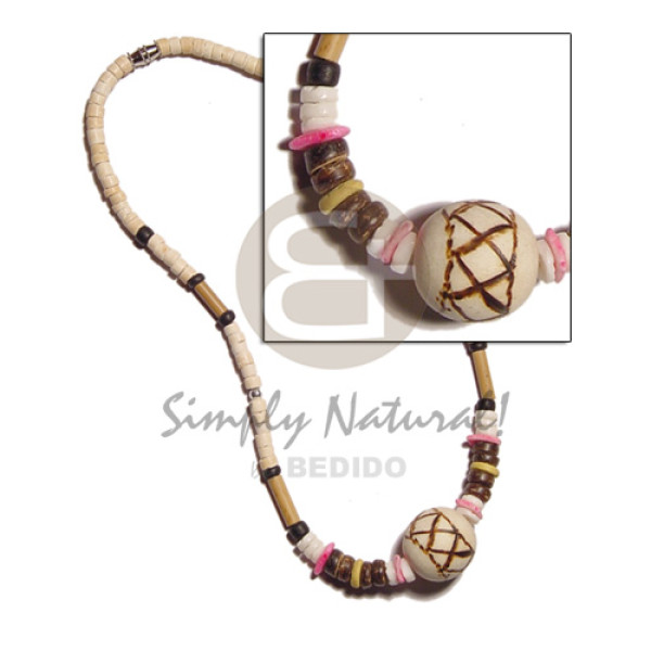 4-5mm coco heishe bleach bamboo,whiteclam combination and wood ball bead burning accent..