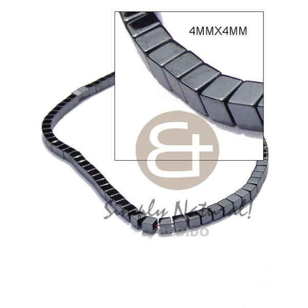 hematite / silvery & shiny opaque stone / square/dice 4mmx4mm in magic wire..