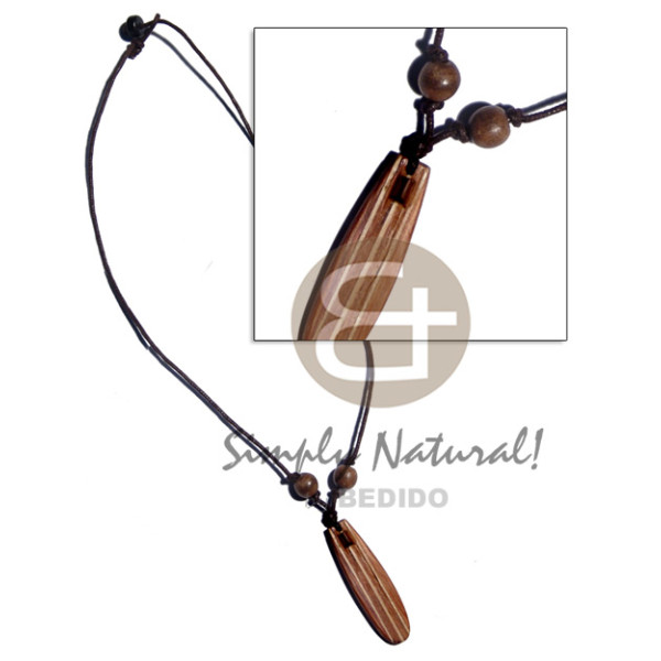 45mmx13mm wooden surfboard fin pendant on wax cord wood beads accent..