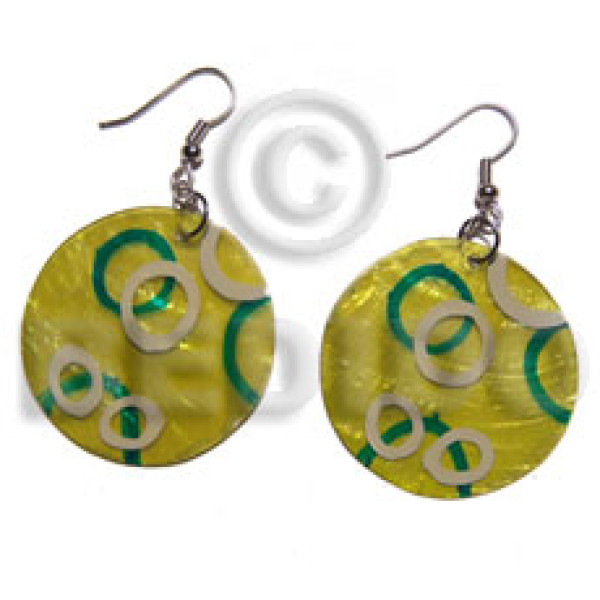 6 layer yellow wax cord matching 40mm round handpainted MOP pendant..