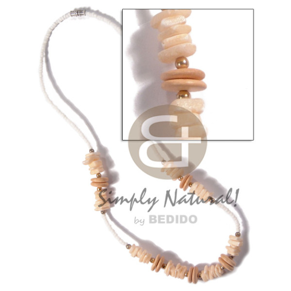 white rose in peach 7-8mm coco Pokalet combination and white glass beads..