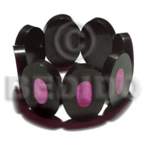 35mmx25mm oval black resin ( 6mm thickness ) laminated pink capiz shell elastic bangle..