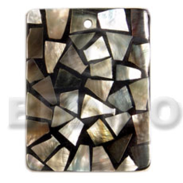 55mmx27mm laminated rectangular paua/kabibe shell combination 5mm black resin backing..