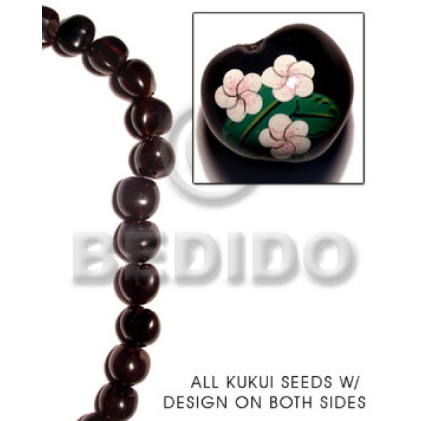 kukui seed / aqua blue flower design on 2 sides / 16 pcs. per strand..