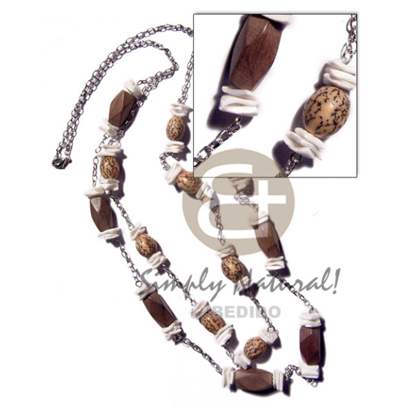 2 rows of graduated metal chain buri tiger seeds / 18mmx10mm greywood beads and white rose shell a..
