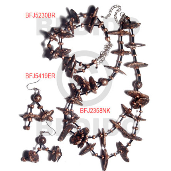 We supply and manufacture the cheapest wholesale natural set jewelry from the Philippines. Handmade set jewelry necklaces bracelets and earrings made of natural components like coco, bone, horn, shell and wood.
