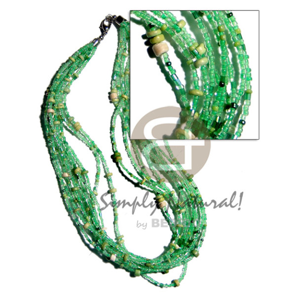 4-5mm coco heishe fatigue splashing green coco square cut & glass bead combination..