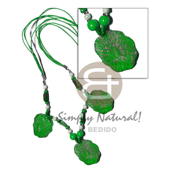 dangling double round 20mm olive green hammershell 12mm orange hammershell flower..