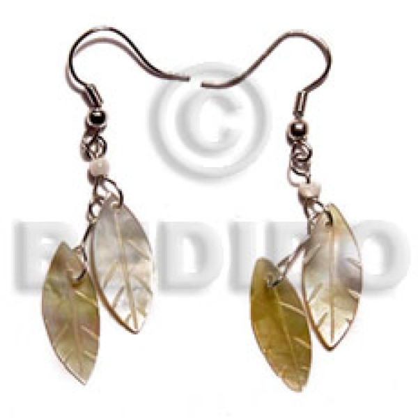 dangling 10x40mm pastel green hammershell leaf and beads earrings..