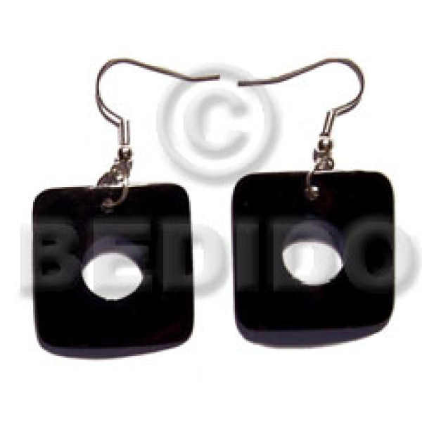 dangling flat 20mmx20mm square black resin laminated paua/hammershell chips combination..