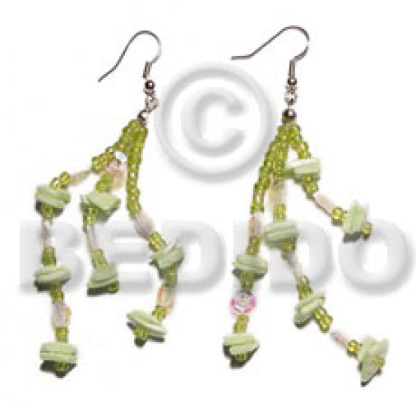 dangling double round 25mm green capiz shell 15mm natural & green heart capiz..